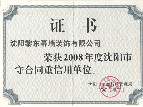 沈陽市守合同重信用單位 |