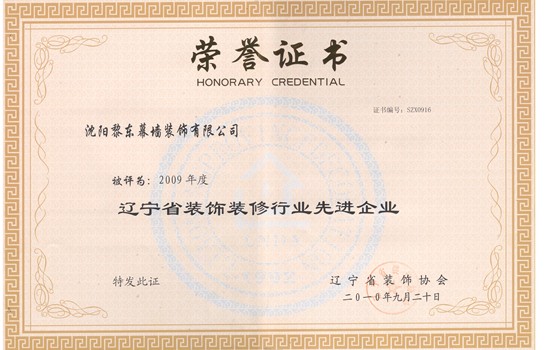 | 2009年獲無錫保利廣場大酒店全國建筑工程裝飾獎(jiǎng) | 2009年趙佳獲遼寧省裝飾裝修行業(yè)優(yōu)秀企業(yè)家 | 2009年度遼寧省裝修裝飾行業(yè)十強(qiáng)企業(yè) |