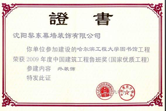 | 2009年獲優(yōu)秀品牌企業(yè) | 2009年度獲沈陽市守合同重信用證書 | 2009年獲哈爾濱工程大學(xué)魯班獎(jiǎng) |